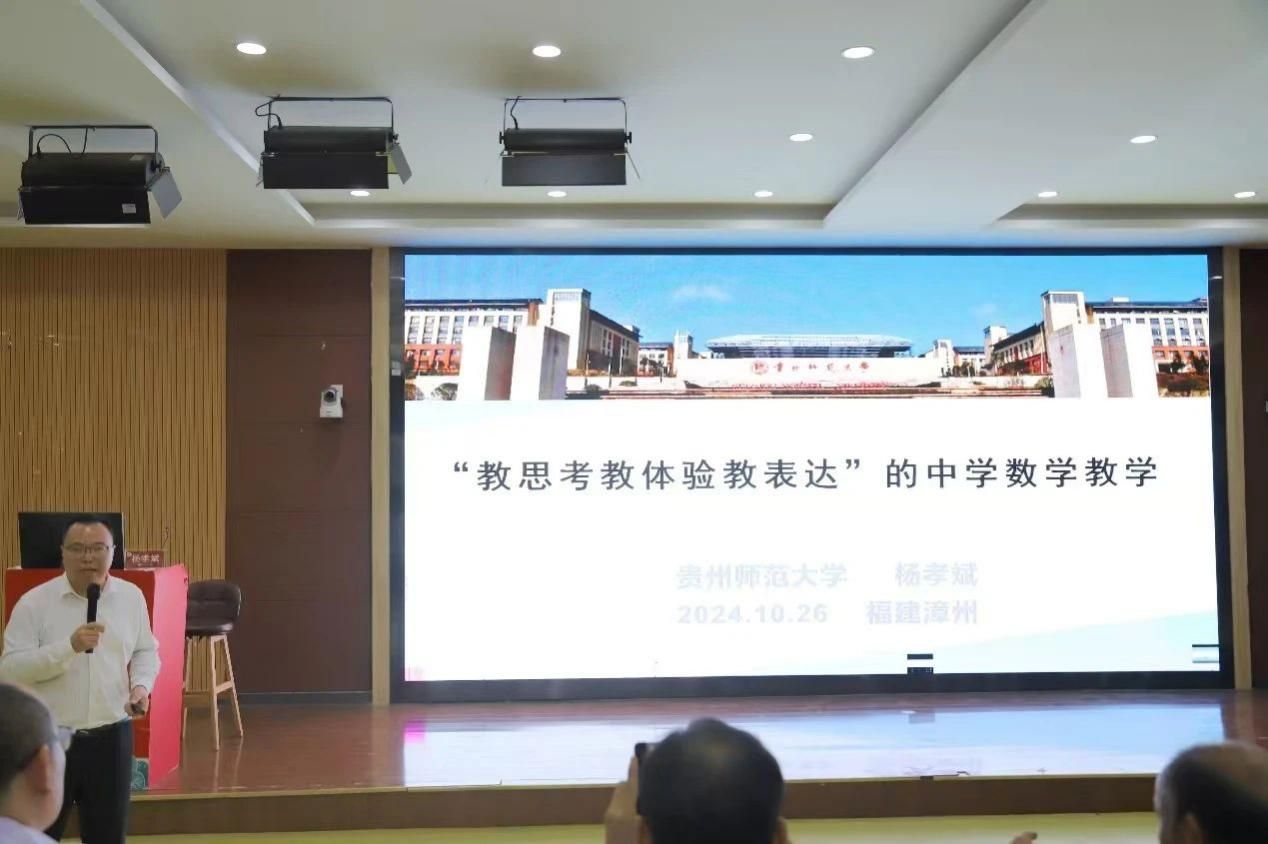 贵州师范大学杨孝斌教授作题为《“教思考教体验教表达”的中学数学教学》的讲座。杨孝斌教授的“教思考教体验教表达”的中学数学教学理念强调在教学中融入思考、体验与表达三个方面,旨在培养学生的核心素养。这一理念倡导通过创设情境引发学生思考,通过实践活动加深体验,并鼓励学生积极表达自己的见解,促进其全面发展。三者相互支撑,共同推动学生在理解和应用数学知识的过程中提升解决问题的能力。