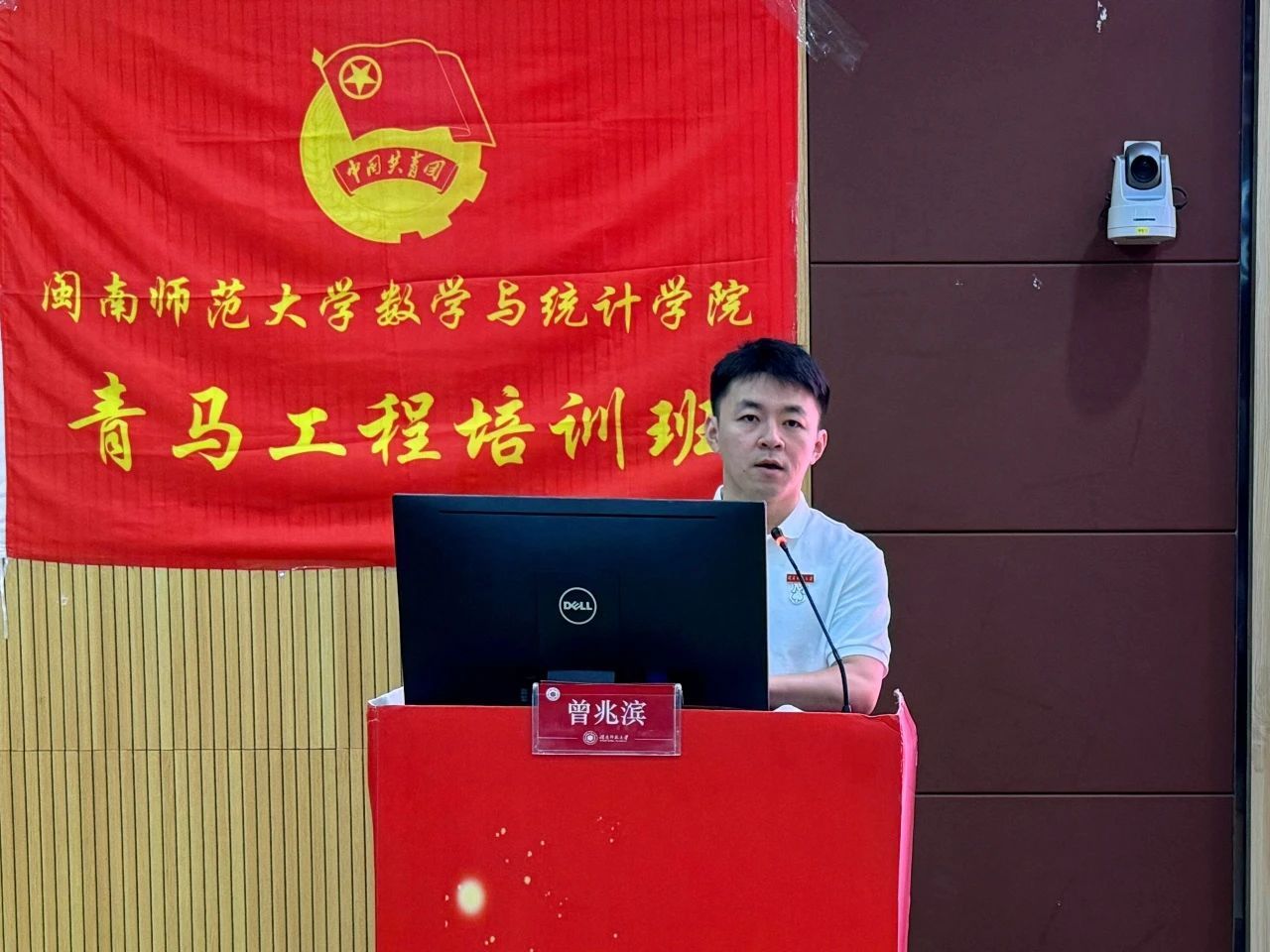 开班仪式结束后,校团委教工团委副书记曾兆滨老师应邀为学员们带来青马工程培训班第一讲——《青春航标,筑梦向前》团学干部辅导培训。