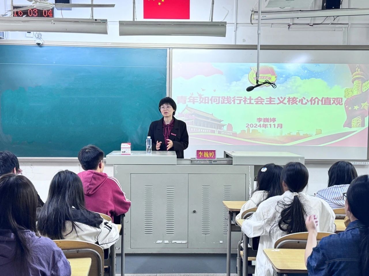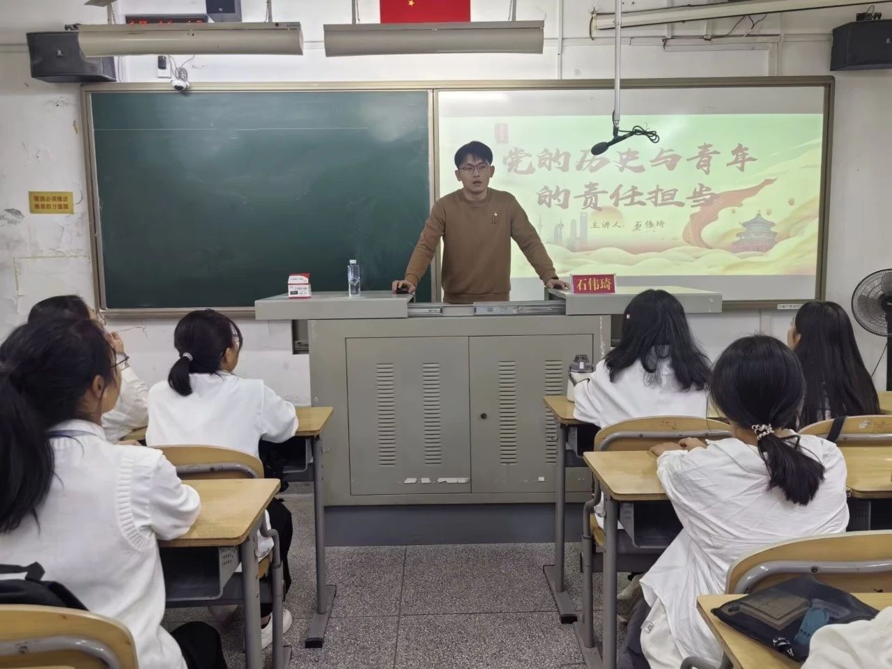 石伟琦老师通过回顾党史光辉历程,阐述青年在其中的先锋力量,明确青年践行责任担当的路径,激励广大青年传承党史精神,坚持正确价值追求,坚定理想信念,在新时代为国家发展、民族复兴贡献力量,担当起时代赋予的光荣使命。