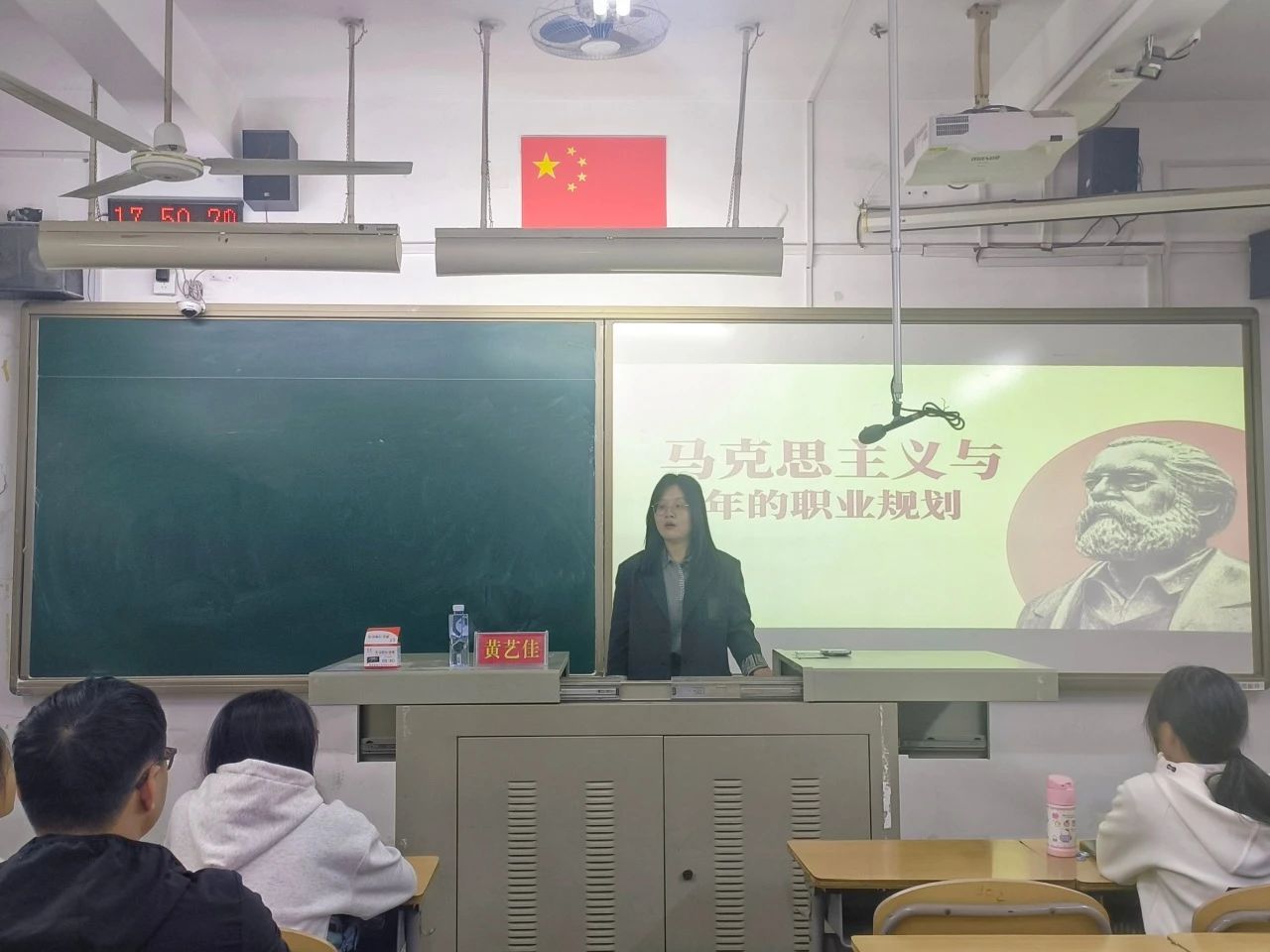 黄艺佳老师从“马克思主义青年择业的观点”和“马克思择业观给我们的启示”两个方面为学员们带来主题为“马克思主义与青年的职业规划”的讲座。老师引导学员们要明确自己的目标和职业选择,她希望同学们在往后的工作、学习上志存高远,实现自我,理性思考,服务社会。