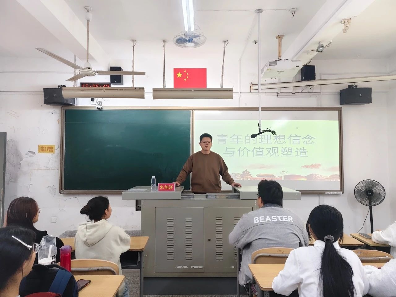 朱旭泽老师提出了青年理想信念与价值观的议题,全面分析其影响因素。老师要求学生干部关注青年思想动态,充分发挥家庭、学校、社会等各方力量,综合运用多种方式引导青年树立正确理想信念和价值观,助力青年成长成才,为实现中华民族伟大复兴贡献力量。