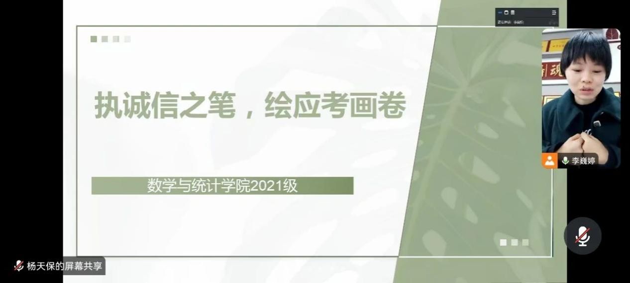 李巍婷老师从诚信应考出发,希望同学们能够遵纪守法、做到诚信应考,为同学们强调了考试过程中的纪律和要求,以及相关答题规范,也希望大家做到认真复习、端正态度,及时调整好考试情绪,保持一颗平常心,以积极、乐观的心态面对即将到来的挑战,坚决抵制作弊诱惑。