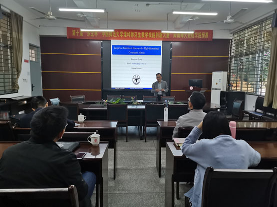 在2日上午的《Empirical Likelihood Test for High-dimensional Covariance Matrices》报告中,张荣茂教授首先介绍了高位协方差矩阵的研究现状,展示了先前的研究成果。接着,以两个具体的实例操作过程,提出了经验似然比的相关概念与定义公式以及如何求解。然后,列举出几个常用的经验似然比的处理方法,对比阐述其优点,引出高位协方差矩阵。最后,总结了研究展望和今后的研究方向。