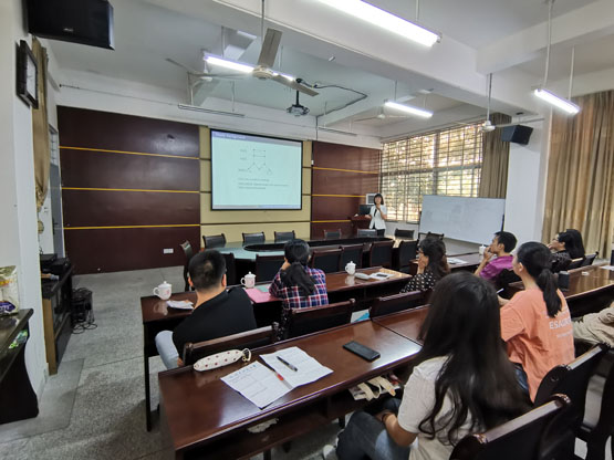 报告中,刘岩教授首先介绍了饱和图等相关概念。接着,以静止子图的具体例子向大家具体讲解。结合自身的研究方向,在实际研究中选取匹配数为研究对象,进行了深入的研究,向大家展示了一些研究成果,并且结合该研究领域的研究现状进行了对比分析,阐述了边连通度和连通度。最后,展示了超图的一些研究成果以及相关的研究结论。报告结束后,在座的老师和学生就相关研究问题进行了探讨和交流。
