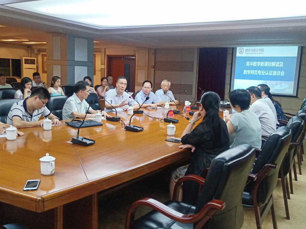 为更好了解新高考背景下高中数学新课标,推动数学与应用数学(师范)专业认证工作,6月27日,我院在逸夫楼学术交流中心3楼会议室召开高中数学新课标解读及数学师范专业认证座谈会。座谈会邀请福建师范大学校长王长平教授、教务处处长林伟川教授进行指导交流,学院党政领导班子及全体教师参加交流座谈,座谈会由学院林梦雷院长主持。