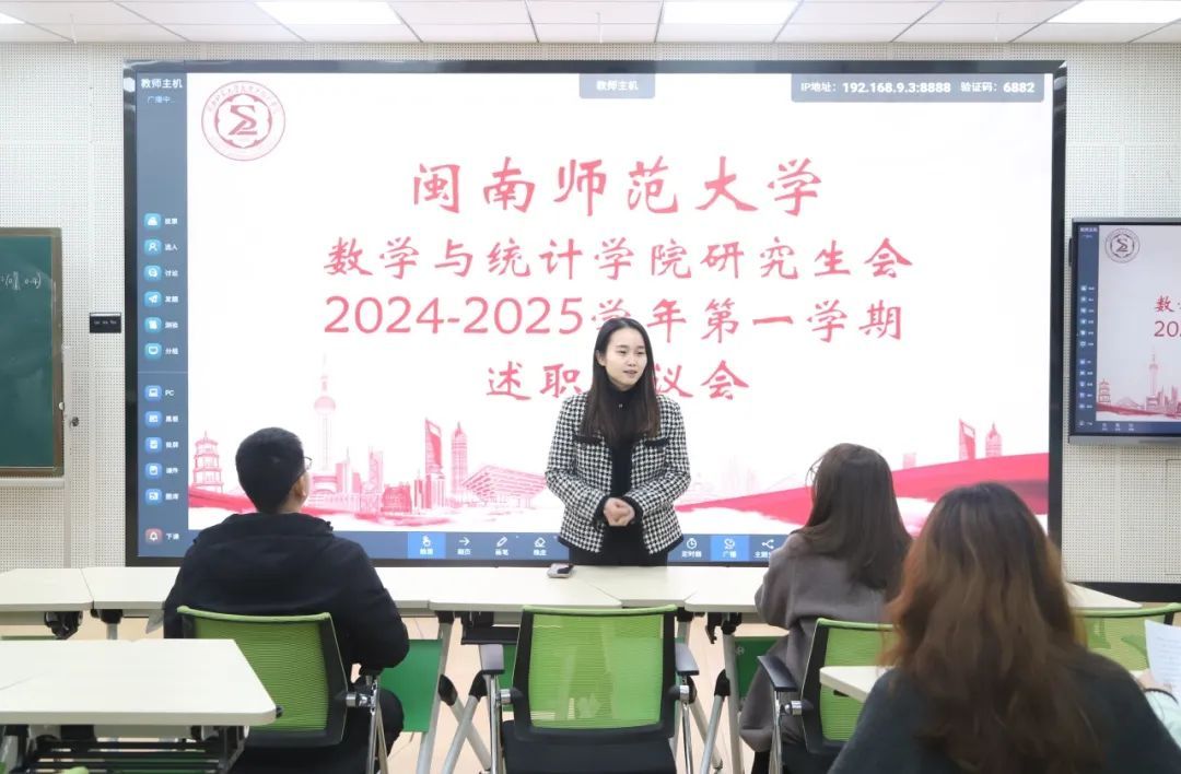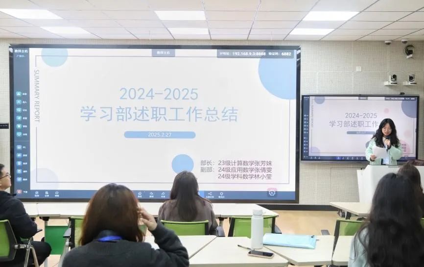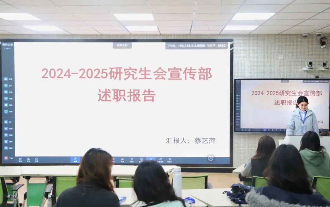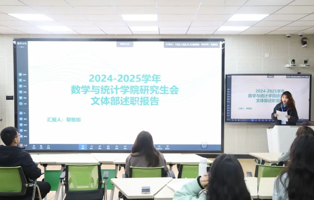数学与统计学院研究生会作为学院学生工作的中坚力量,始终秉持着服务同学、助力成长的初心,积极搭建各类平台,促进学术交流与个人发展。为进一步总结过去、规划未来,提升学生干部的综合素质与工作能力,数学与统计学院研究生会于2月26日在砺志楼131教室召开2024-2025学年第一学期述职评议会暨学生干部春季培训会。学院团委副书记郑珊、研究生会指导老师及全体成员参加,会议由主席团成员魏雪敏主持。