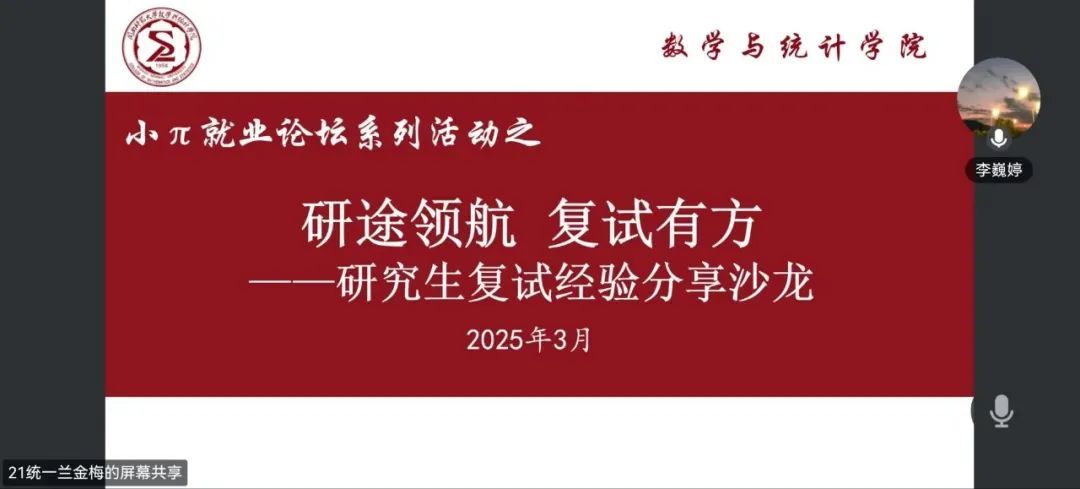 考研复试,作为通往梦想学府的最终考验,其重要性不言而喻。为助力我院学子高效备战并成功跨越这一关键门槛,我院于3月9日晚借助腾讯会议平台开展“研途领航,复试有方”——研究生复试经验分享沙龙。