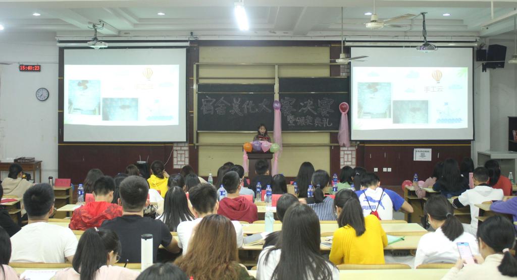 为培养大学生良好的生活习惯和积极向上的生活态度,不断提高宿舍人文氛围,营造优美的生活环境,11月18日,数学与统计学院在砺志楼120举办了“喜迎甲子学府校庆,共筑一八宿舍风采”宿舍美化大赛决赛暨颁奖典礼。学院辅导员、各大学生组织负责人以及2017级和2018级全体学生代表出席本次活动。