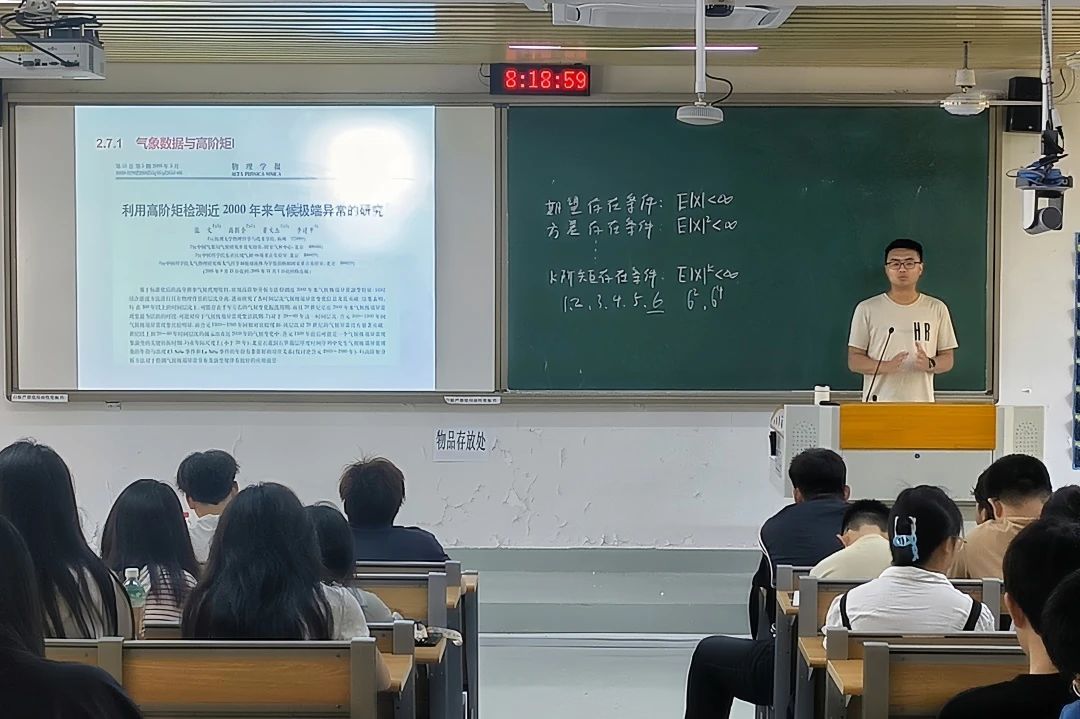在讲解高阶矩特征数的过程中,引用《物理学报》论文,描述高阶矩在气象研究中的应用:检测气候极端异常,揭示 20 世纪气候活跃期及关键转折时期等,使学生理论知识联系实际,深刻认识到概率论与数理统计基本理论在真实世界的用途。