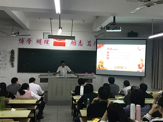 为深入学习贯彻党的十九大精神,更好地学习领会党的十九大精神的核心要义和精髓,根据校宣传部统一部署,11月29日,我院在砺志楼131室组织开展学习贯彻党的十九大精神宣讲报告。我校党的十九大精神宣讲团成员、马克思主义学院教师宋帮强副教授作题为《解读习近平总书记十九大报告——深入学习贯彻党的十九大精神》的报告。学院全体教工党员、学生党员、入党积极分子、主要学生干部代表参加报告会。