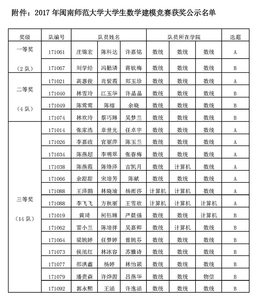2017年304永利集团大学生数学建模竞赛评阅工作已于2017年6月24日结束。为严肃竞赛纪律,杜绝不当之风,竞赛组委会决定设立获奖结果争议期,为期5天。现将获奖名单征求异议稿公布如下,公开征求广大师生的意见。