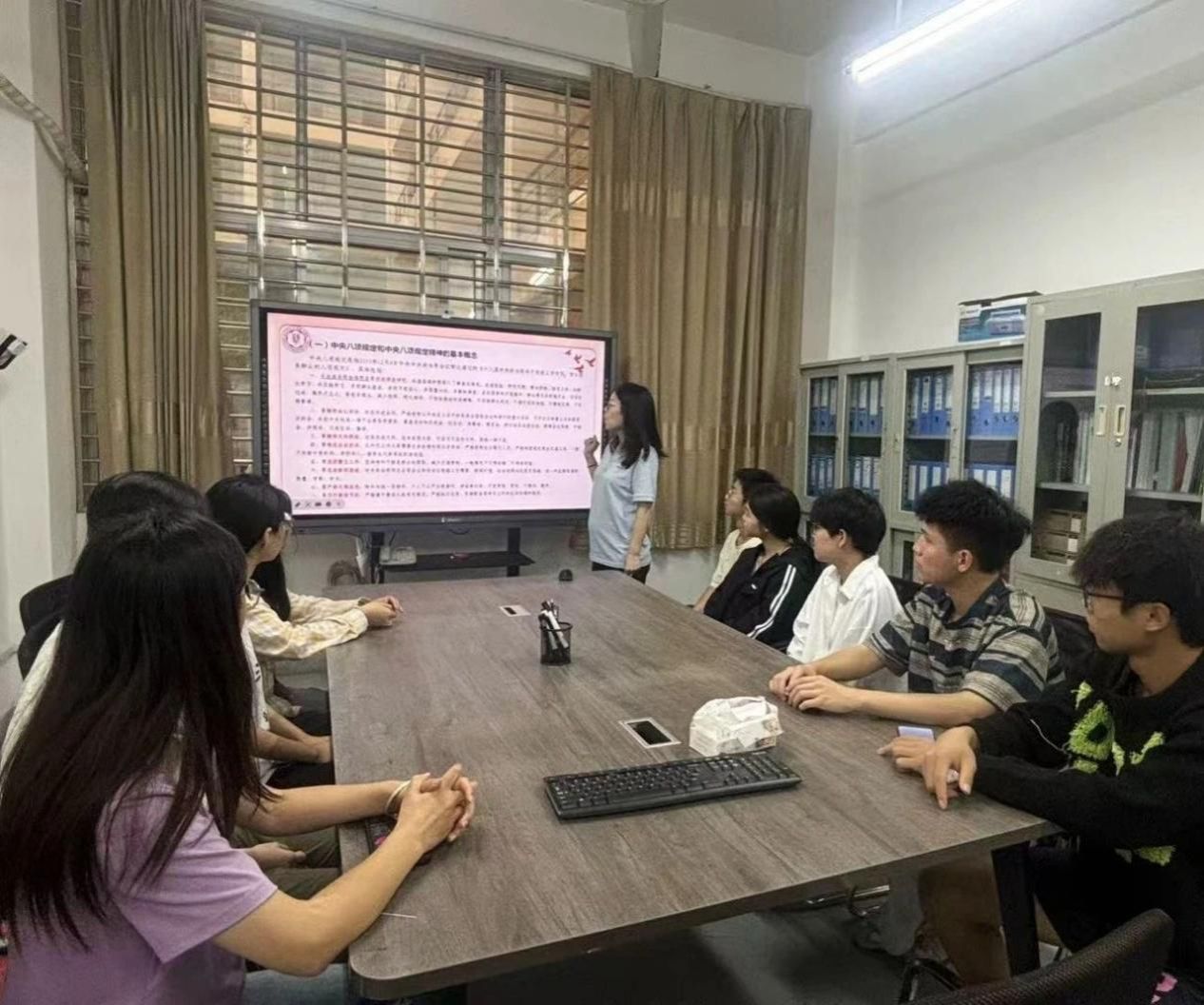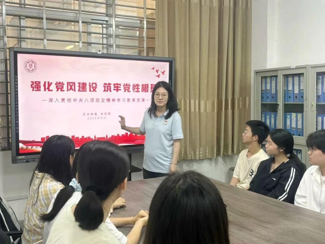 5月29日下午,我校“青马工程”青年干部、艺术学院辅导员杨惠静老师,在学生社区,面向我院学生开展青马干部进学生社区宣讲活动。杨老师从党风廉政建设全局出发,系统讲解中央八项规定的发展背景,同时结合高校实际,列举多起学生干部违规使用经费等真实案例,生动揭示违反中央八项规定精神在校园中的具体表现,敲响纪律警钟。杨老师引导同学们筑牢纪律防线,号召学生干部在班级事务管理、活动组织中坚持公开透明、以身作则,推动中央八项规定精神在校园学习生活中走深走实。