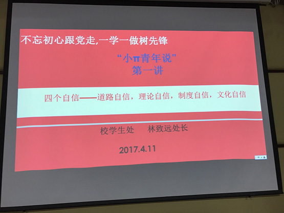 为进一步贯彻落实习近平总书记讲话精神,推动共青团改革以及从严治团工作,根据校团委在全校共青团中广泛深入开展“学习习近平总书记讲话 做合格团员”为主题的教育实践的决定,数统院结合学院团课特色,开展“不忘初心跟党走,‘一学一做’树先锋”——小π青年说系列活动。2017年4月11日,小π青年说第一讲于砺志楼114正式召开。304永利集团学生处处长林致远老师担任主讲人,交流会由学院党委书记陈晶莹老师主持,学院团委书记陈明老师、各级辅导员、各组织学生干部代表及学生党员代表参加了本次交流会。
