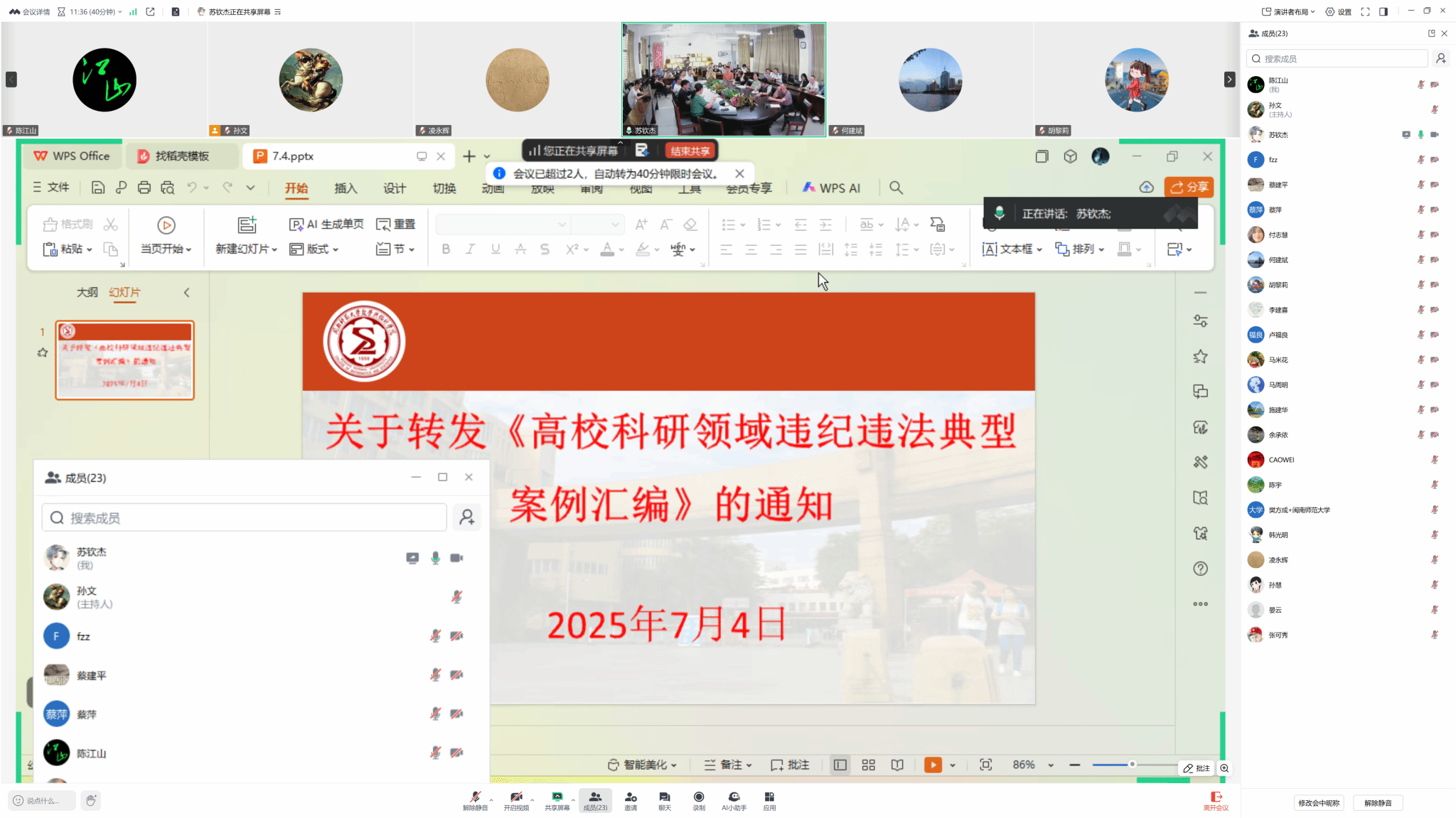 为深入贯彻党中央、省委党的建设工作领导小组会议和《中共中央办公厅关于在全党开展深入贯彻中央八项规定精神学习教育的通知》精神,2025年7月4日上午数学与统计学院在砺志楼114召开全体专任教师会议,学习《关于转发<高校科研领域违纪违法典型案例汇编>的通知》。会议由黄韩亮院长主持,采用线上线下相结合的方式进行。林国平副院长在会上为大家宣读《304永利集团科研诚信建设与学术不端行为处理办法》,研读了《高校科研领域违纪违法典型案例汇编》,通过深入剖析一系列科研不端行为的典型案例,引导学院科研人员以案为鉴,警钟长鸣,真正做到心有所畏,守住纪律底线,铸牢廉洁意识防线,强化规则意识,严格规范学术行为,共同营造学院科研工作的清廉新气象。