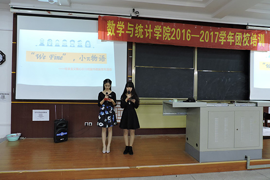 为提升我院学生干部综合实力,打造数统院精英干部,提高学生组织整体工作能力,数统院于2016年10月30日至11月17日开展一系列团校培训,先后进行了素质拓展之礼仪培训、能力培训、综合素质培训及成果展示。11月27日晚,我院院团委主办的团校培训成果展示在砺志楼120教室隆重举行。出席本次活动的有我院团委副书记陈明老师、各学生组织代表及所有干事。