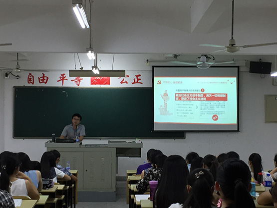 9月13日,学院邀请教育与科学学院党委书记朱志明教授为学院所有学生党员、积极分子,开展主题为“不忘初心,继续前进”的学习贯彻习近平总书记“七一”重要讲话精神宣讲。朱志明教授从“中国共产党伟大历史贡献”、“精细解读不忘初心 继续前进”、“习近平总书记的要求与期待”、“当前青年党员的责任与担当”等四个方面开展报告。他希望党员和学生干部要认真学习领会习近平总书记“七一”讲话的精神,牢记初心、忠于初心、守住初心,真正承担起青年党员的责任和担当。