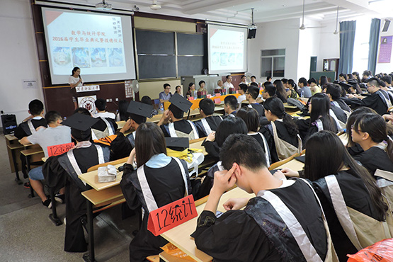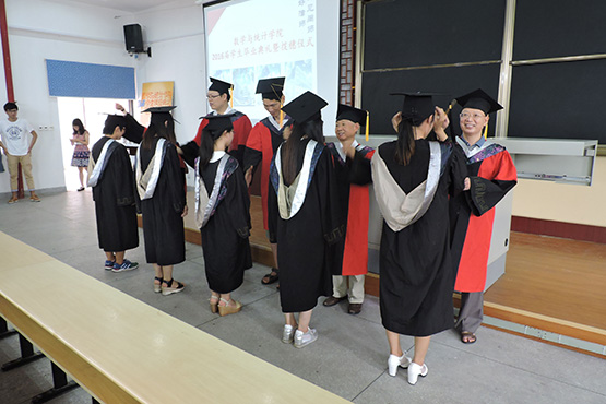 最后李克典院长致辞。李院长回顾了毕业生们一路的成长和取得的荣誉,对同学们表示祝贺,并为同学们感到骄傲。院长希望同学们能够做到三点:第一,不管身处何时何地,都要继续孜孜不倦地学习,不断完善、充实自己;第二,适应社会,正确面对一切,无论成功或失败,尽早融入社会、服务社会,做对社会有贡献的有志青年;第三,学会珍惜,学会关爱,学会感恩。李院长也表示,不论同学们走多远,304永利集团数学与统计学院永远是同学们的家,永远以同学们为傲!接着,由领导老师为毕业生颁发毕业证书,学士学位证书及毕业礼品。