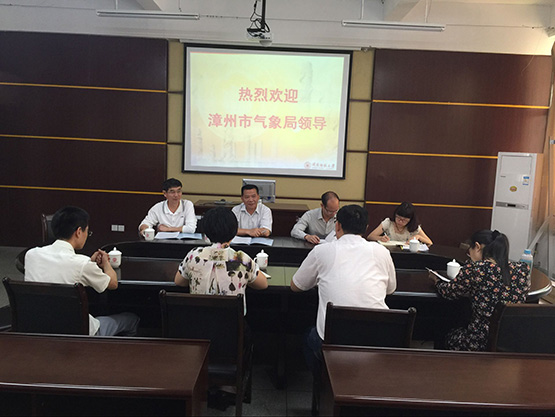 5月12日上午,漳州市气象局童以长局长、黄建忠纪检组长、气象台吴建成副台长、业务科科员陈艺娜一行四人到我院,共同洽谈合作事宜。我院陈晶莹副书记、黄韩亮副院长、林国平副教授、施建华副教授共同出席座谈会。
