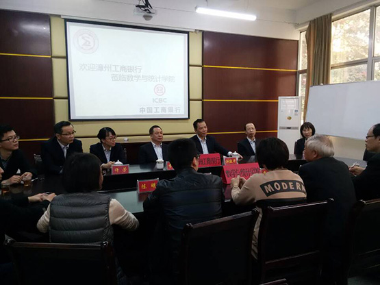 12月14日,中国工商银行漳州市分行副行长江建平、分行纪委书记李秀苗、芗城支行行长黄惠民等一行10余人,到数学与统计学院共商合作事宜。数学与统计学院院长李克典教授与市分行副行长江建平共同为芗城支行人力资源培训基地揭牌。数统院党委副书记陈晶莹一同参加揭牌仪式。