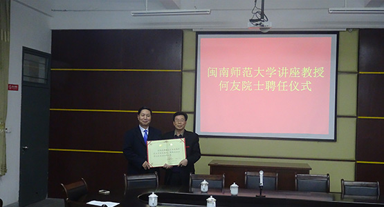12月9日下午,我校在砺志楼114举行聘任中国工程院何友院士为讲座教授仪式,李进金校长出席聘任仪式并为何友院士颁发聘书。