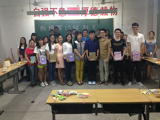 会上,院领导老师首先给新同学带来了中秋佳节的祝福,希望同学们在大学里相互交流,增进友谊,尽快适应大学生活,敢于拼搏,努力学习。同学们也都纷纷进行了自我介绍,与大家分享了家乡的风土人情,以及饮食、生活习惯、气候等地区差异带来的新鲜感,并畅谈入学以来的一些感想和今后的理想抱负。来自贵州布依族的一位新同学说:“虽然远离家乡来此求学,但一点也不感觉到孤单,因为在这里学长、学姐还有老师们的热情让我充分感受到数统院这个大家庭的温暖!”