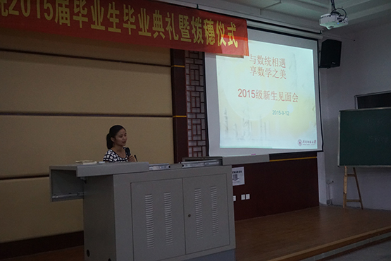 9月13日是全校新生报到的日子,数学与统计学院提前一周即开始策划给2015级的同学们不一样的见面礼。学院的专任老师、辅导员、优秀校友以及在校的学长学姐们,将欢迎和祝福的话写在题板上,在砺志楼的各个地方展现。这些展示都被拍成短片,在报到当天通过微信公众号,推送给每一个新生。