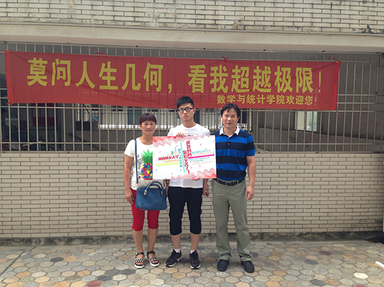 老师、学长学姐们在学校的各个标志性建筑前“卖萌”迎新?报到当天,与父母合影,为父母道一声谢谢?没错,这些都是今年数学与统计学院提前为新生们策划的惊喜。