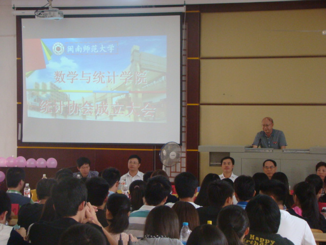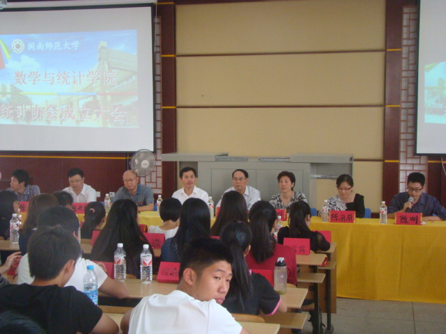 大会同时宣布聘请芗城区统计局李朝群局长、陈丽丽副局长、陈开松副局长作为统计协会的实践指导老师。新任命的会长俞伟宗同学介绍了协会的相关章程和宗旨,副会长林莉同学则向所有协会会员提出倡议,号召同学们学好统计基础知识,掌握统计软件,加强实践锻炼,提升自身素质,为促进学科的建设、协会的发展做出贡献。最后,数学与统计协会成立大会在同学们雷鸣般掌声中落下帷幕。
