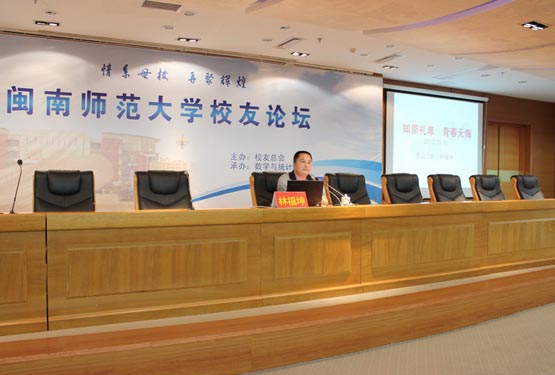 10月10日下午,由我校校友总会主办,我院校友会承办的校友论坛正式开讲,我院79级优秀校友、东山二中校长、全国优秀教师林福坤在逸夫图书馆五楼报告厅举办了题为——“知崇礼卑,青春无悔”讲座。校友总会、校友办、教务处相关老师,部分院系校友会会长、秘书长以及各院系的学生一同聆听了讲座。校党委副书记、校友总会常务副会长林春生主持了本次讲座。