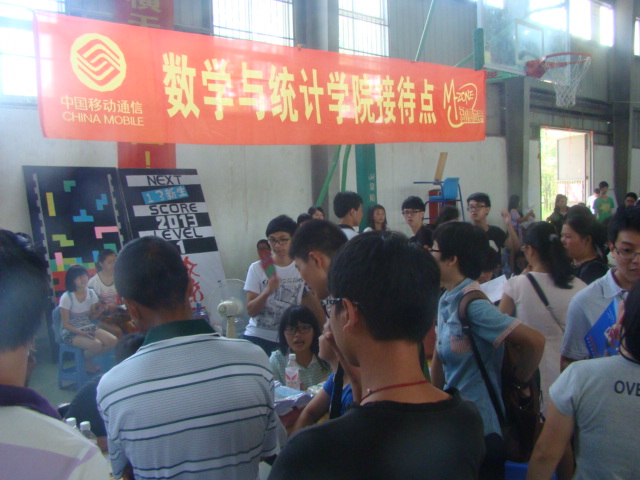 9月8日,数学与统计学院在球类馆迎接2013级新生。迎新从早上7点持续到下午6点,共有来自全国各地的302名学生注册报到。学院党总书记徐志怀、团委副书记陈明以及各年级辅导员亲临现场和学生一起开展迎新工作。2012级、2011级同学也各司其职,提前做好分工,认真完成各项工作。