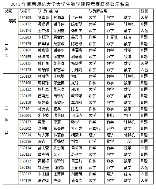 2013年304永利集团大学生数学建模竞赛评阅工作已于2013年6月20日结束。为严肃竞赛纪律,杜绝不当之风,竞赛组委会决定设立获奖结果争议期,为期5天。现将获奖名单征求异议稿公布如下,公开征求广大师生的意见。