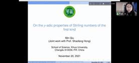 14、西华大学邱敏副教授做报告“On the p-adic properties of Stirling numbers of the first kind”
