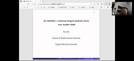 2、首都师范大学徐飞教授做报告“ON INDEFINITE k-UNIVERSAL INTEGRAL QUADRATIC FORMS OVER NUMBER FIELDS”