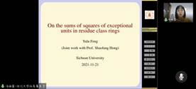 19、四川大学冯雨露博士做报告“On the sums of squares of exceptional units in residue class rings”