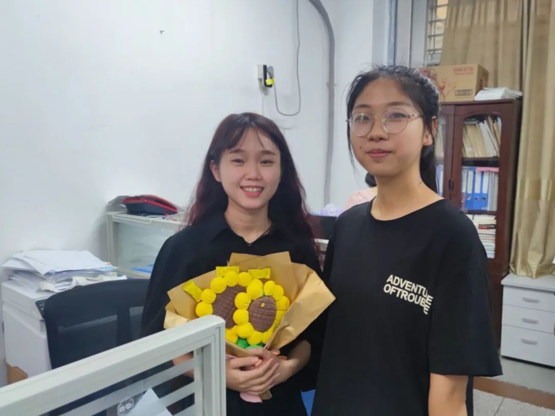 数统学子们为老师送上自己亲手制作的向日葵花束。