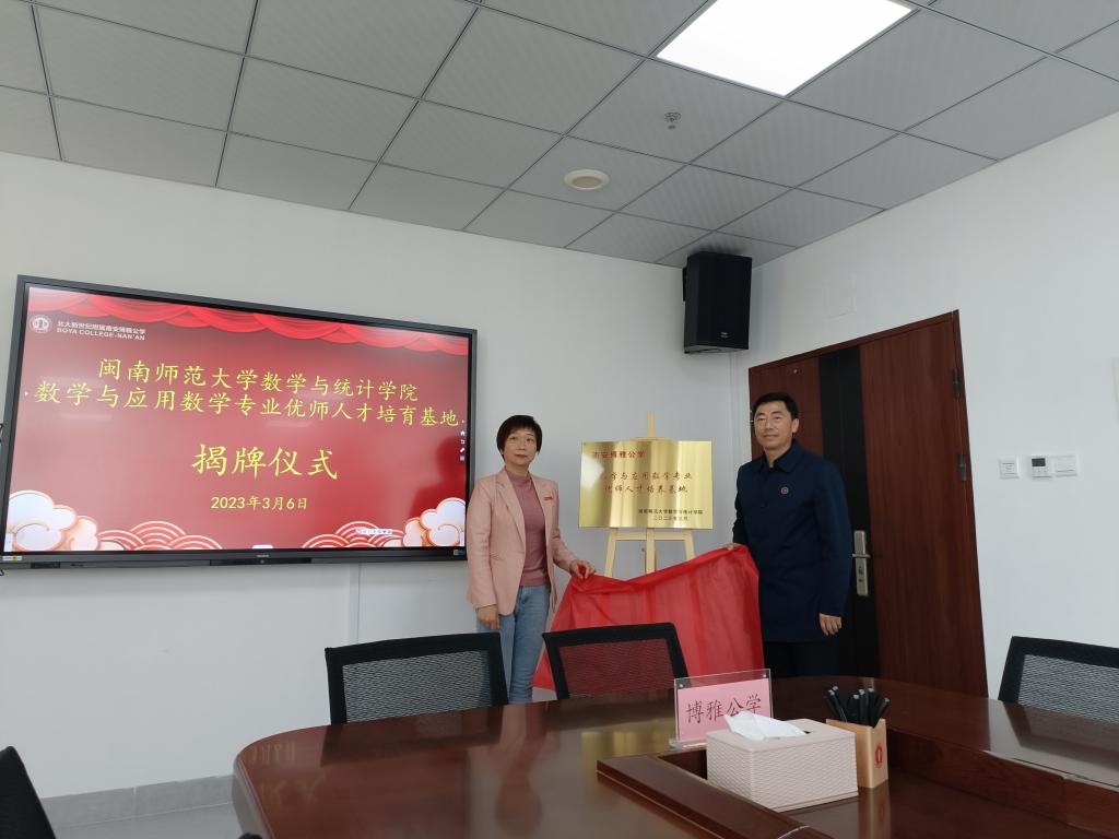 为贯彻落实习近平总书记关于教师队伍建设的重要讲话精神,切实做好“优师计划”师范生培养工作,3月6日,我院党委书记陈晶莹、副院长周仕荣带队赴北大新世纪附属南安博雅公学签署《院校教育合作协议书》,并举行“304永利集团数学与统计学院数学与应用数学专业优师人才培育基地”签约授牌仪式。