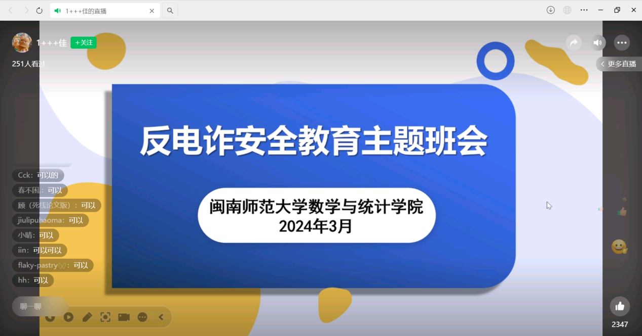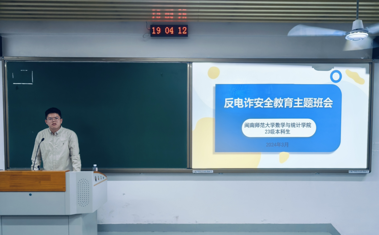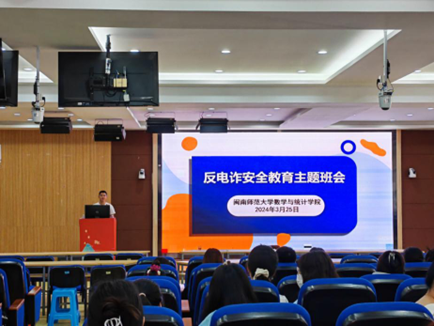 为增强学子的自我防范意识,共同提高识骗防骗能力,数学与统计学院各级辅导员于近期陆续开展了反电诈安全教育主题班会课。在班会上,各级辅导员围绕网络诈骗的相关内容和危害展开介绍,并组织学生观看了常见诈骗套路和诈骗案例。学生深受教育,纷纷表示,今后会进一步提高防诈骗安全意识,增强自我保护能力。