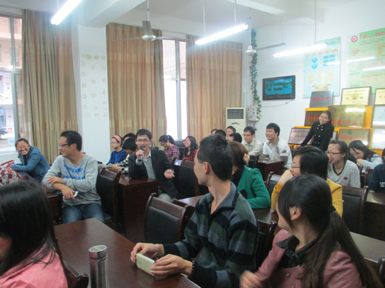 座谈会分两部分进行。第一部分在砺志楼114会议室,主要以“交流合作、主动与被动、自信”等话题展开,然后由大家积极参与讨论,踊跃发言,畅谈心得,进行自我思考和反思。第二部分在室外,大家围坐一圈,聊聊各自的学习与生活,还有同学献上动听的歌曲。整个活动气氛十分热烈和融洽。