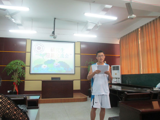 第一阶段,党建主任叶蕴锋同学代表全院研究生对2013级研究生新生的到来表示热烈的欢迎。