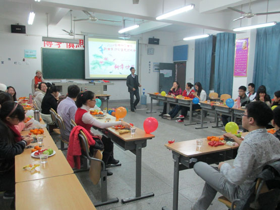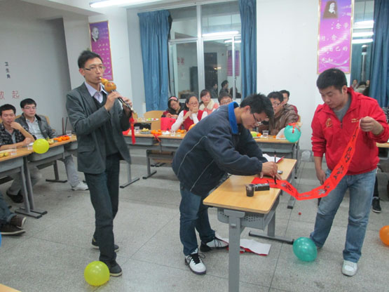 本次晚会的宗旨是以游戏娱乐形式,加强我系研究生间的沟通、交流,营造良好的节日氛围。晚会分为四个阶段,分别是:“猜人游戏”、“文娱表演”、“逢七喊过”和“快乐至上”。其中主要节目有:书法表演、葫芦丝演奏、唱红歌、吹气球、跳舞等。