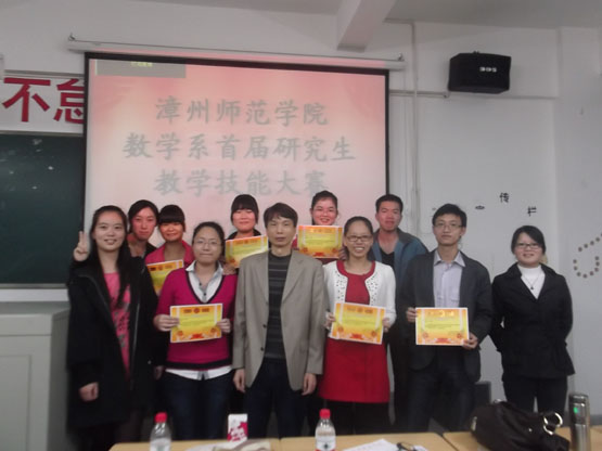 12月2日下午,由我系主办、系研究生会学习部承办的数学与信息科学系首届研究生教学技能大赛于砺志楼303举行,评委由在职教育硕士庄素慧和王巧慧、教学经验丰富的刘少强和唐忠宝以及研究生辅导员李气芳老师组成,副主任蔡建平教授亲临指导。