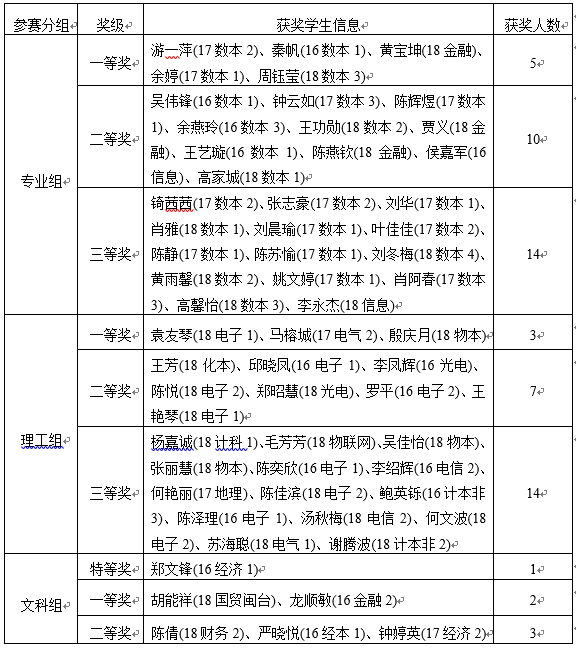 2019年304永利集团大学数学竞赛试卷评阅、评奖工作已于2019年5月25日结束。针对此次竞赛中成绩特别突出的一位选手,经竞赛组委会讨论决定,给予16经济1班郑文锋同学文科组特等奖。同时给予17数本2班游一萍等58位同学各分组(专业组、理工组与文科组)一二三等奖。为严肃竞赛纪律,杜绝不当之风,竞赛组委会决定设立获奖结果争议期,为期7天(2019年5月30日-6月5日)。现将拟获奖名单(见附件、统一等级内排名不分先后)公布如下,公开征求广大师生的意见。