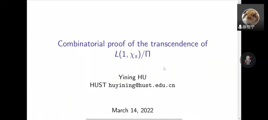 应我院邀请,3月14日下午,华中科技大学胡怡宁副教授在腾讯会议作了题为《Transcendence, Carlitz L function, and Automata》的报告。相关师生聆听了此次报告,报告由曹炜老师主持。