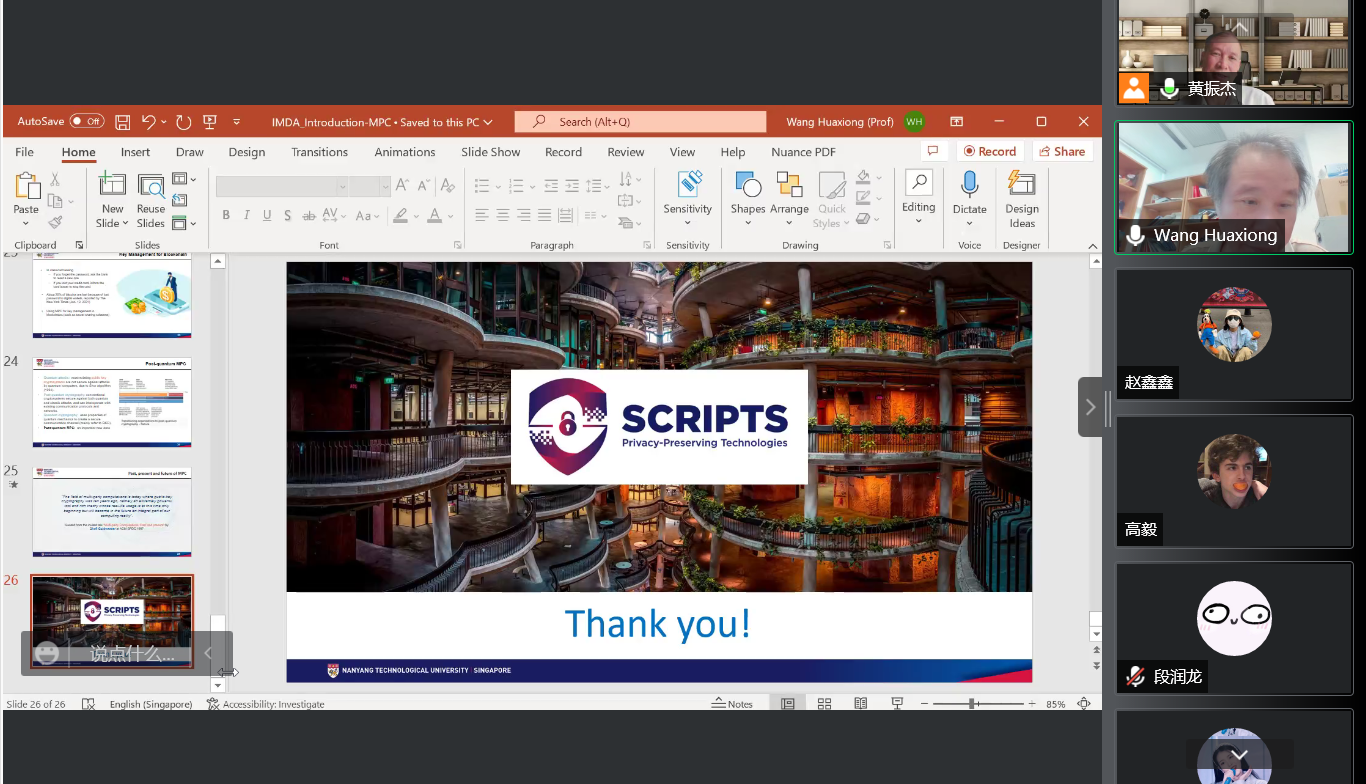 应我院邀请,10月11日下午,南洋理工大学王华雄教授在腾讯会议作了题为《Secure Multiparty Computation》的报告。相关师生聆听了此次报告,报告由黄振杰老师主持。