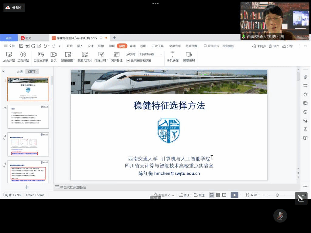 应我院邀请,10月18日下午,西南交通大学陈红梅教授在腾讯会议作了题为《稳健特征选择方法》的报告。相关师生聆听了此次报告,报告由廖淑娇老师主持。