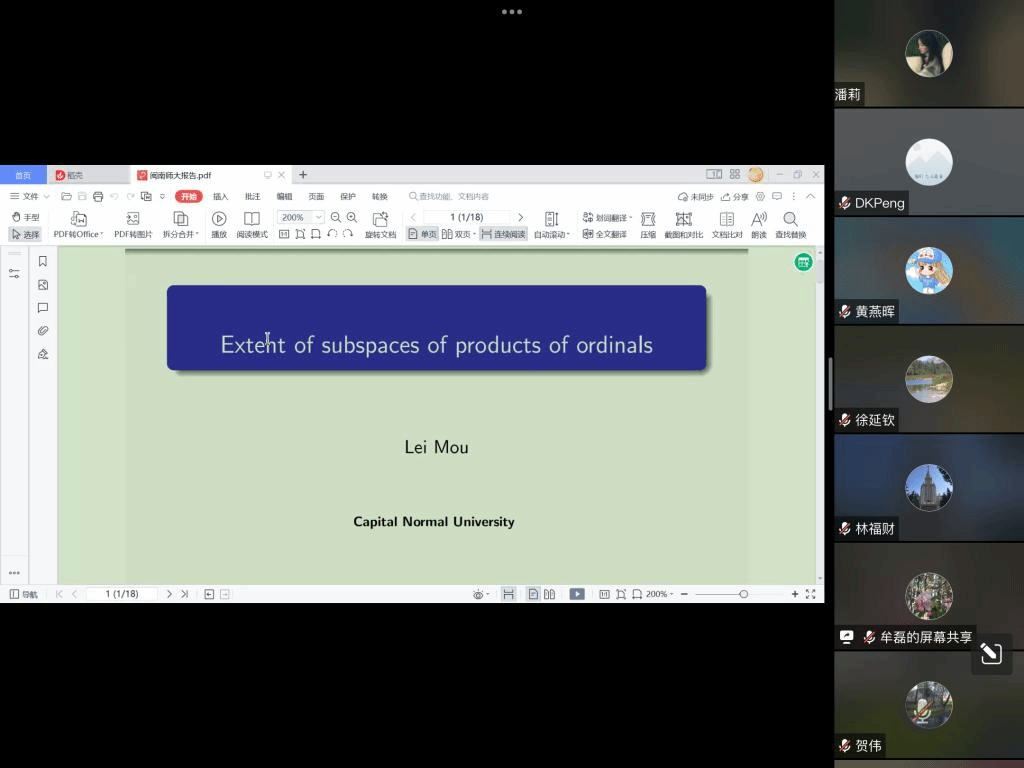 应我院邀请,11月19日上午,首都师范大学牟磊教授在腾讯会议作了题为《序数乘积的子空间的extent》的报告。相关师生聆听了此次报告,报告由林福财老师主持。