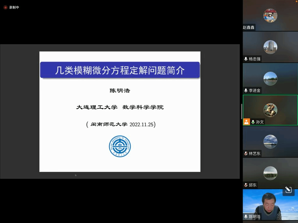 应我院邀请,11月25日下午,大连理工大学陈明浩教授在腾讯会议作了题为《几类模糊微分方程定解问题简介》的报告。相关师生聆听了此次报告,报告由孙文老师主持。