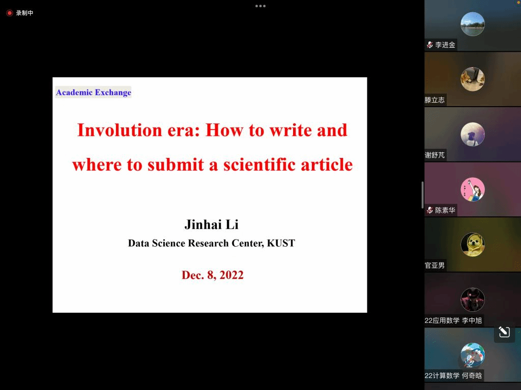 应我院邀请,12月8日下午,昆明理工大学李金海教授在腾讯会议作了题为《科技论文写作与投稿》的报告。相关师生聆听了此次报告,报告由林艺东老师主持。
