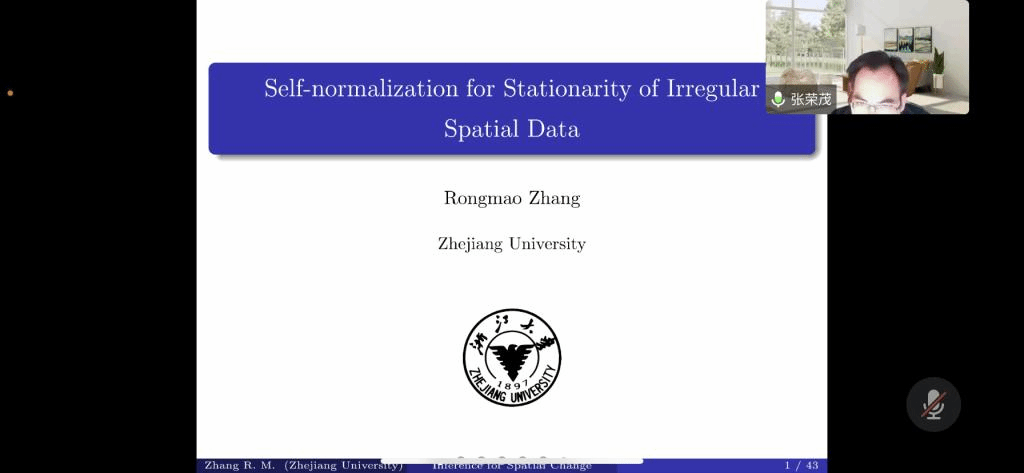 应我院邀请,12月16日下午,浙江大学张荣茂教授在腾讯会议作了题为《Self-normalization for Stationarity of Irregular Spatial Data》的报告。相关师生聆听了此次报告,报告由吕阳阳老师主持。