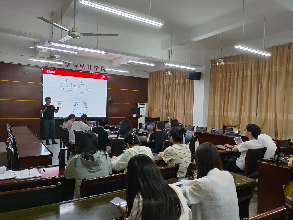 报告中,谢加良教授认为网络空间已成为海洋、陆地、天空、太空四维空间之外的人类活动第五维空间,网络空间安全对国家和社会的发展具有举足轻重的地位。本报告以实际问题为导向,介绍如何利用模糊推理系统在处理不确定信息和复杂非线性关系等问题上具有的独特优势,融合灰狼优化算法、NSGA-III等多种智能优化方法,解决网络空间安全中的数据隐写、网络入侵检测等实际问题。报告结束后,在座的师生就相关研究问题进行了探讨和交流。
